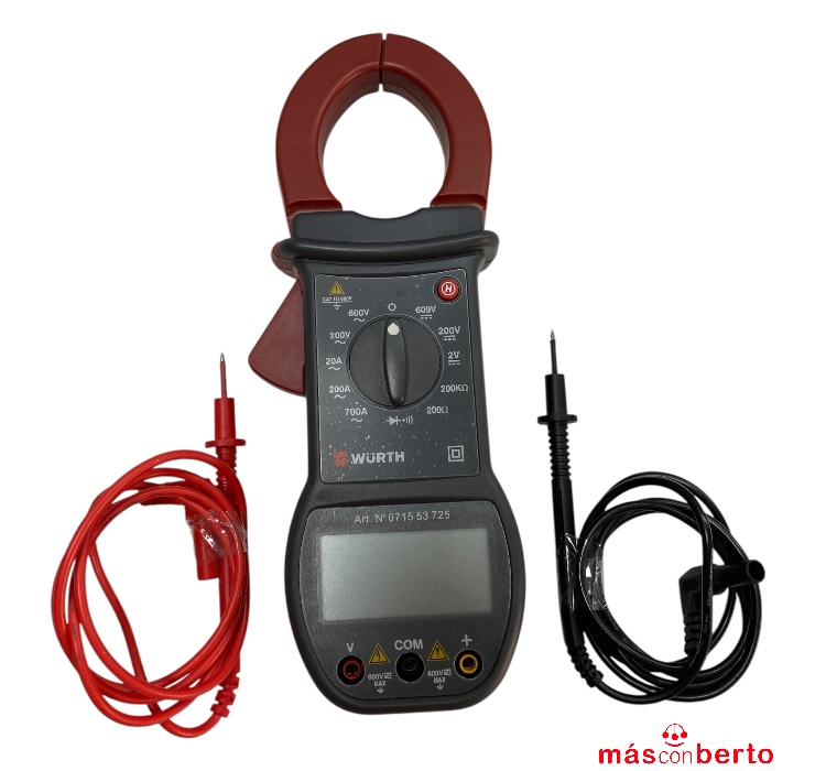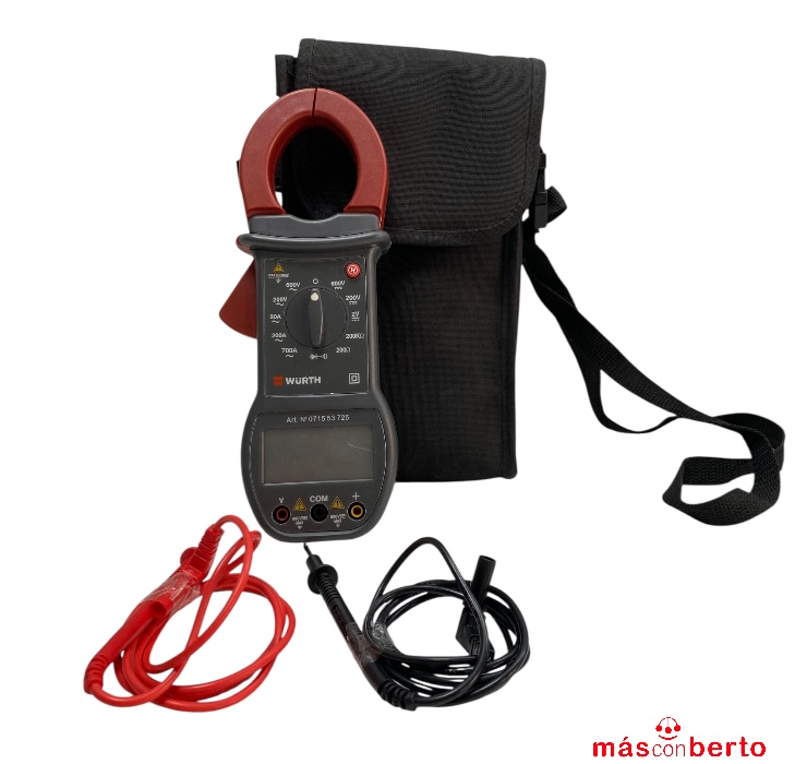Pinza amperimétrica digital marca Wurth modelo 0715 53 725, incluye bolso de transporte