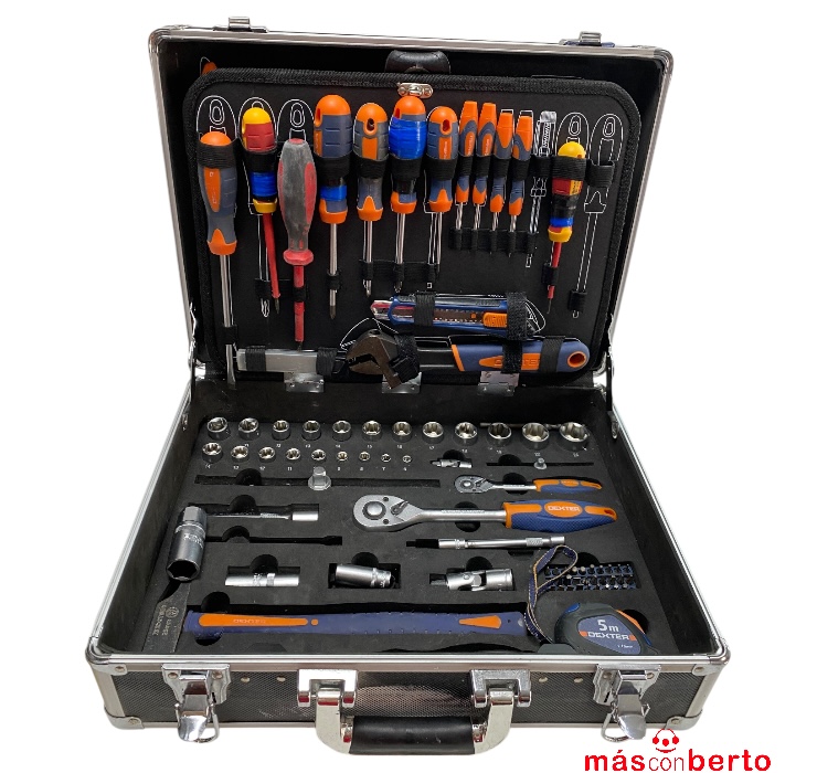 Maletín herramientas de aluminio marca Dexter de aproximadamente 100 piezas