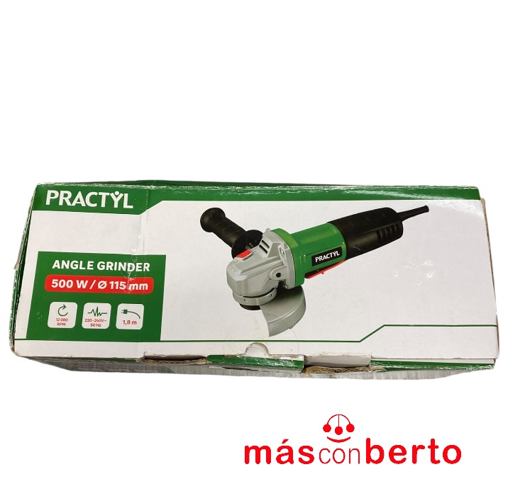 Amoladora 115MM marca Practyl modelo 500PAG1-115.5 de 500W de potencia, incluye caja original