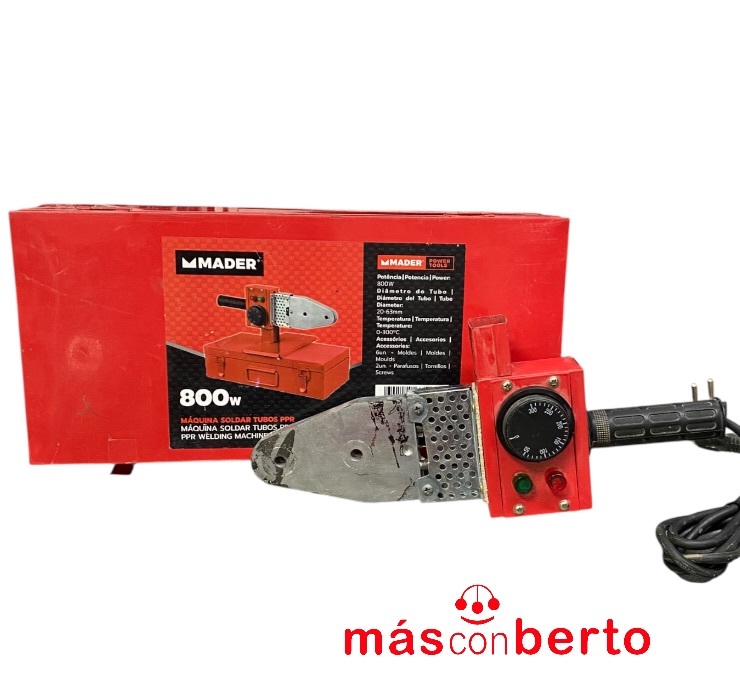Polifusor Mader 800W (Ref. 63525). Permite trabajar con tubos de 20 mm a 63 mm de diámetro. Incluye caja metálica de transporte