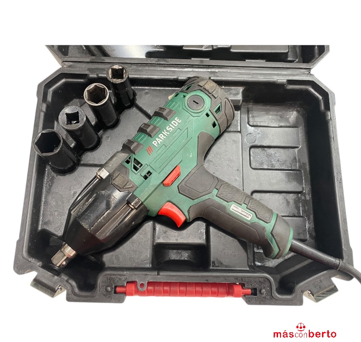 Llave de impacto marca Parkside modelo PDSSE 450C3 de 450W, incluye maletín de transporte y dados