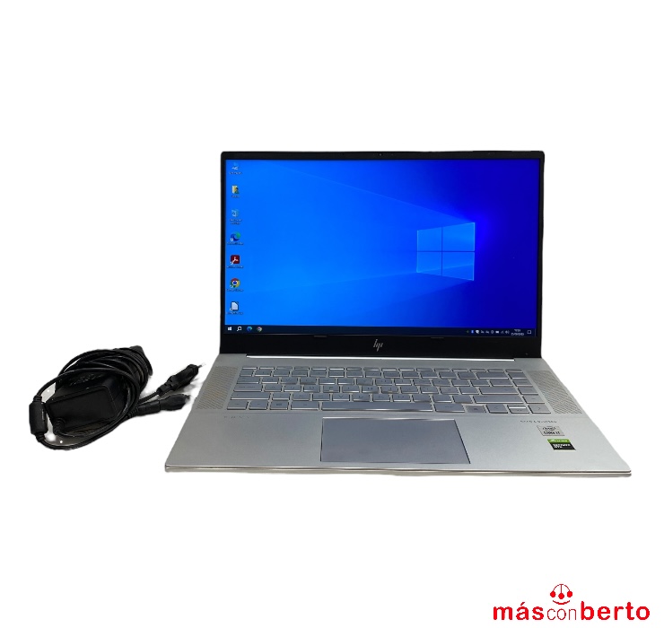 Portátil marca HP modelo ENVY 15-epoxxx, con una pantalla de 15", procesador I7, 16Gb RAM, 512Gb SSD. Windows 10. Incluye cargador