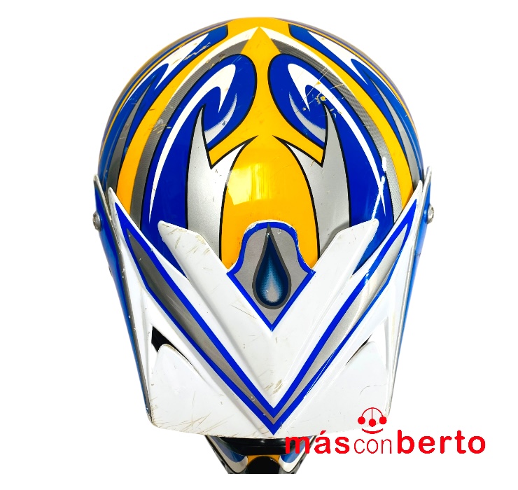 Estado: UsadoCasco Motocross Marca Can Talla L, blanco, azul y amarillo