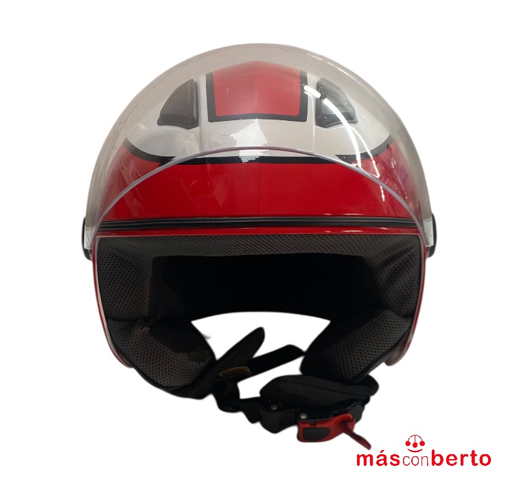 Casco tipo Jet marca Unik modelo CJ-06 Talla M, blanco/rojo