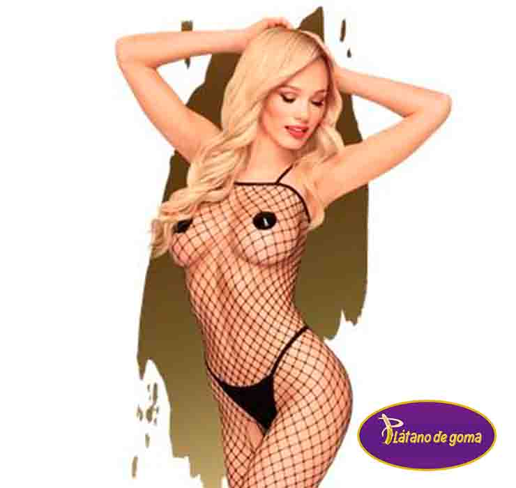 Sensual bodystocking de rejilla ancha con la entrepierna abierta. Con esta prenda no habrá lugar a la imaginación.