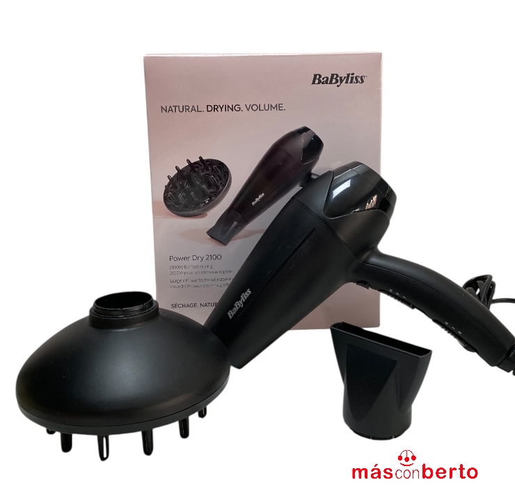 Secador de pelo marca Babyliss modelo Power Dry 2100 de 2100W, incluye concentrador y difusor